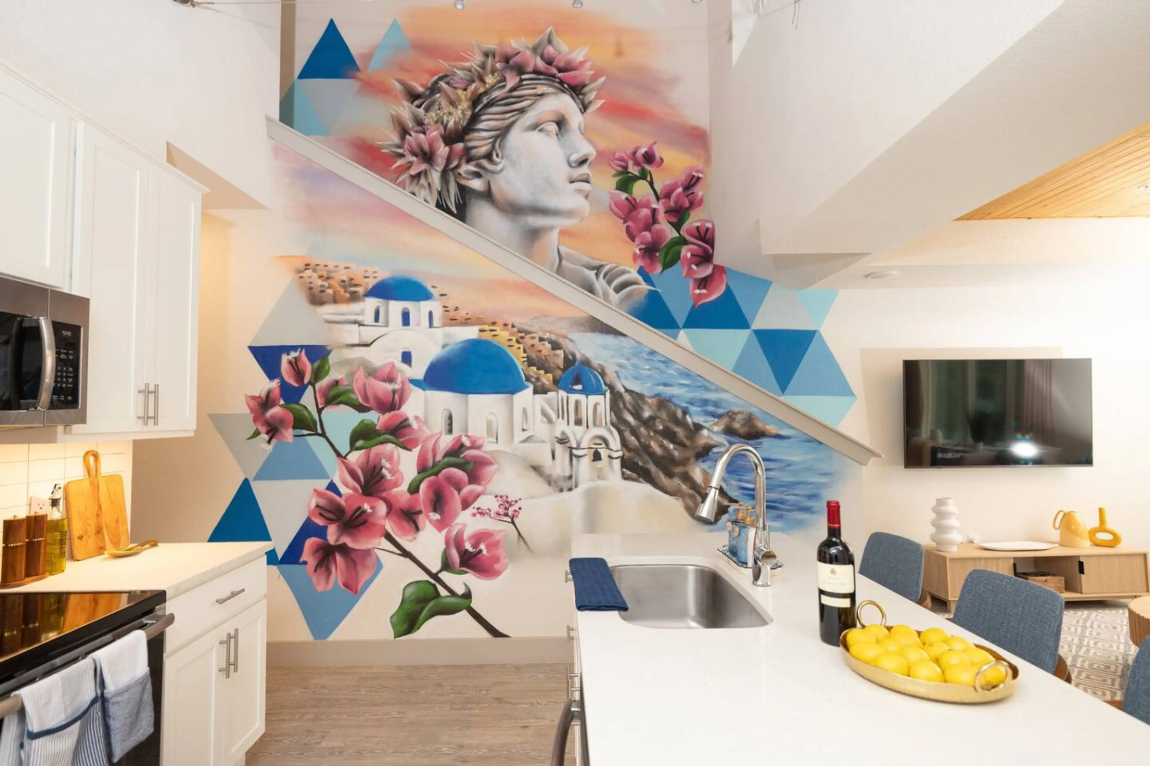 🌟 Modern Mediterranean Style: Greece themed decor with high ceilings on the top floor. 🛏️Comfy Stay: King beds, air mattress, full kitchen, washer/dryer. 📺Stay Connected: Netflix and 500 Mbps WiFi. 🚙Great Location: Walk to Riverwalk and Pearl. No car needed! -🌴Top Amenities: Pool, gym, lounge, ...